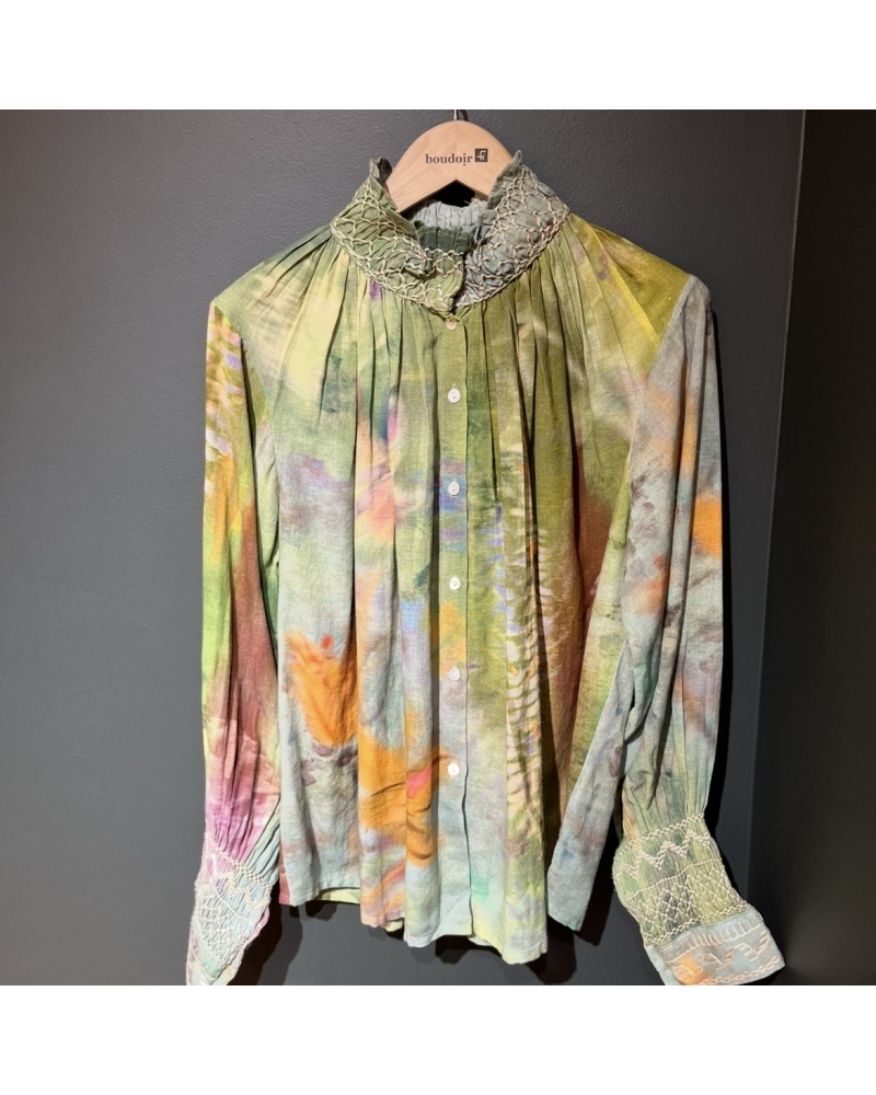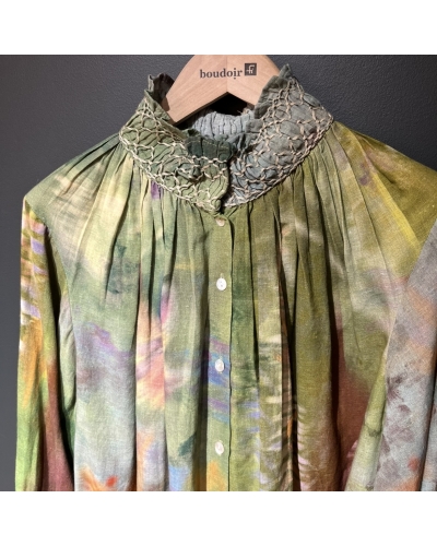 Broderies, ton sur ton, sur le col et les manches