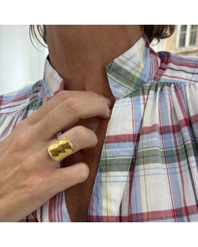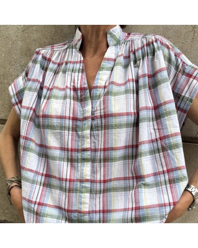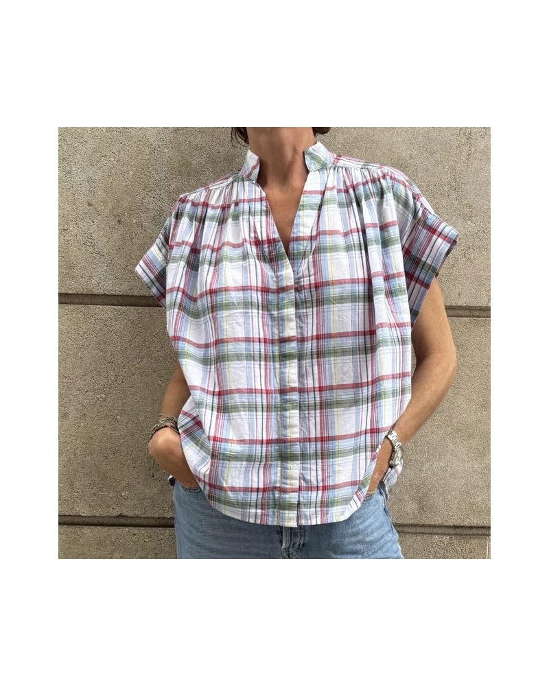 Blouse GEORGIA 1, à carreaux bleu, vert et rouge, avec une légère rayure jaune pale