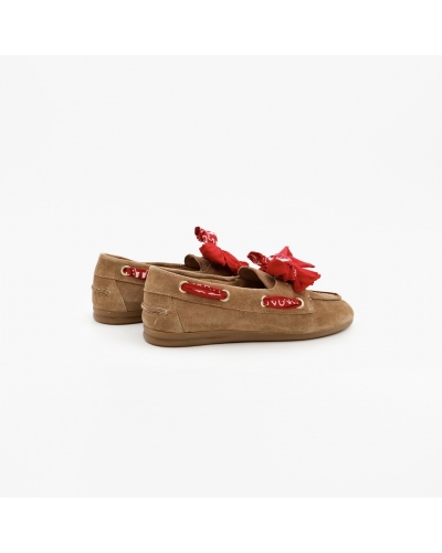 Adoptez une allure chic et décontractée avec ces mocassins en suède camel au toucher velouté.