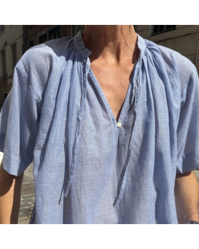 Supprimer de la liste de souhaits Liste de souhaits Aperçu rapide Ajouter au panier Blouse MARLO Ciel Accueil Prix 99,00 € Blouse MARLO, fines rayures, coloris ciel Décolleté en V avec petit bouton et lien de serrage Manches courtes Coupe droite et vaporeuse pour...