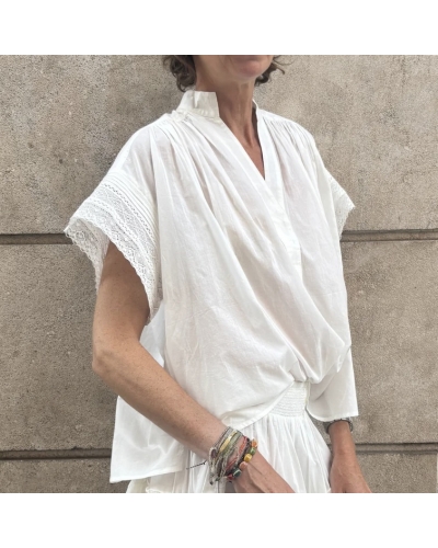 Supprimer de la liste de souhaits Liste de souhaits Aperçu rapide Ajouter au panier Blouse GWENN Accueil Prix 159,00 € Blouse GWEN, coloris blanc Décolletté en V fermé avec deux petits crochets Manches courtes avec empiècement de dentelle Coupe droite et...