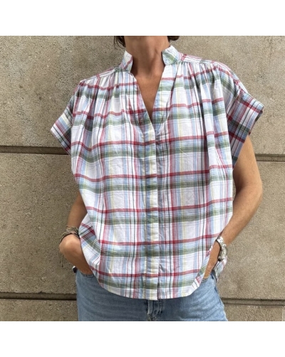 Supprimer de la liste de souhaits Liste de souhaits Aperçu rapide Ajouter au panier Blouse GEORGIA 1 Accueil Prix 109,00 € Blouse GEORGIA 1, à carreaux bleu, vert et rouge, avec une légère rayure jaune pale Décolleté en V Fermeture tout le long avec des boutons en...