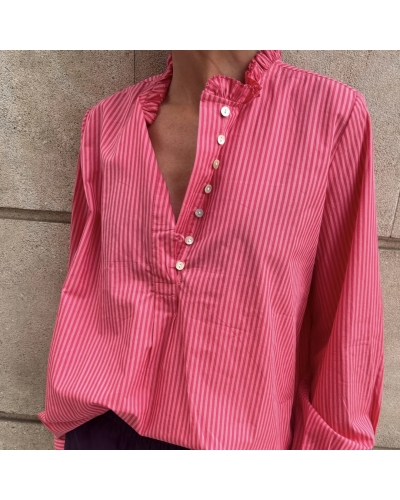 Supprimer de la liste de souhaits Liste de souhaits Aperçu rapide Ajouter au panier Blouse BETHANY 4 Blouses manches courtes Prix 99,00 € Blouse rose en coton. La coupe est très féminine, le décolleté en V est flatteur et les manches vaporeuses. Couleur rose avec de fines rayures...