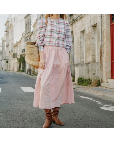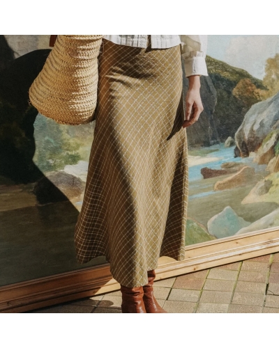 Supprimer de la liste de souhaits Liste de souhaits Aperçu rapide Ajouter au panier Jupe JOSEPHINE Accueil Prix 99,00 € Jupe longue JOSEPHINE, à carreaux kaki et bleu ciel Longueur tibia Fente sur le côté Taille élastiquée Composition : 100 % coton MARQUE...