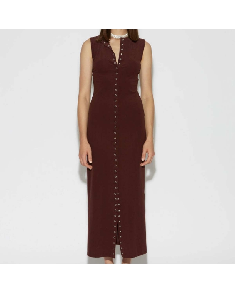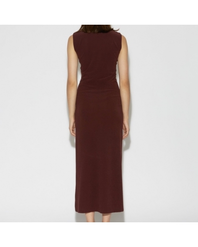 Robe longue sans manche avec des pressions sur toute la hauteur. La coupe près du corps est très féminine et flatteuse.